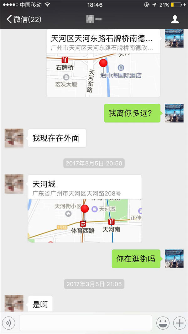 我想知道妹子和我的距離,我是直接帶領,先把我的位置發給妹子。