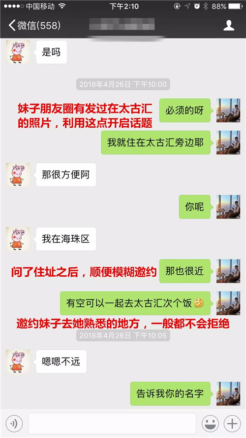 兄弟們可以通過這個案例,學會和妹子應該聊什么樣的話題,如何順勢升級關系,再如何正確的邀約妹子。